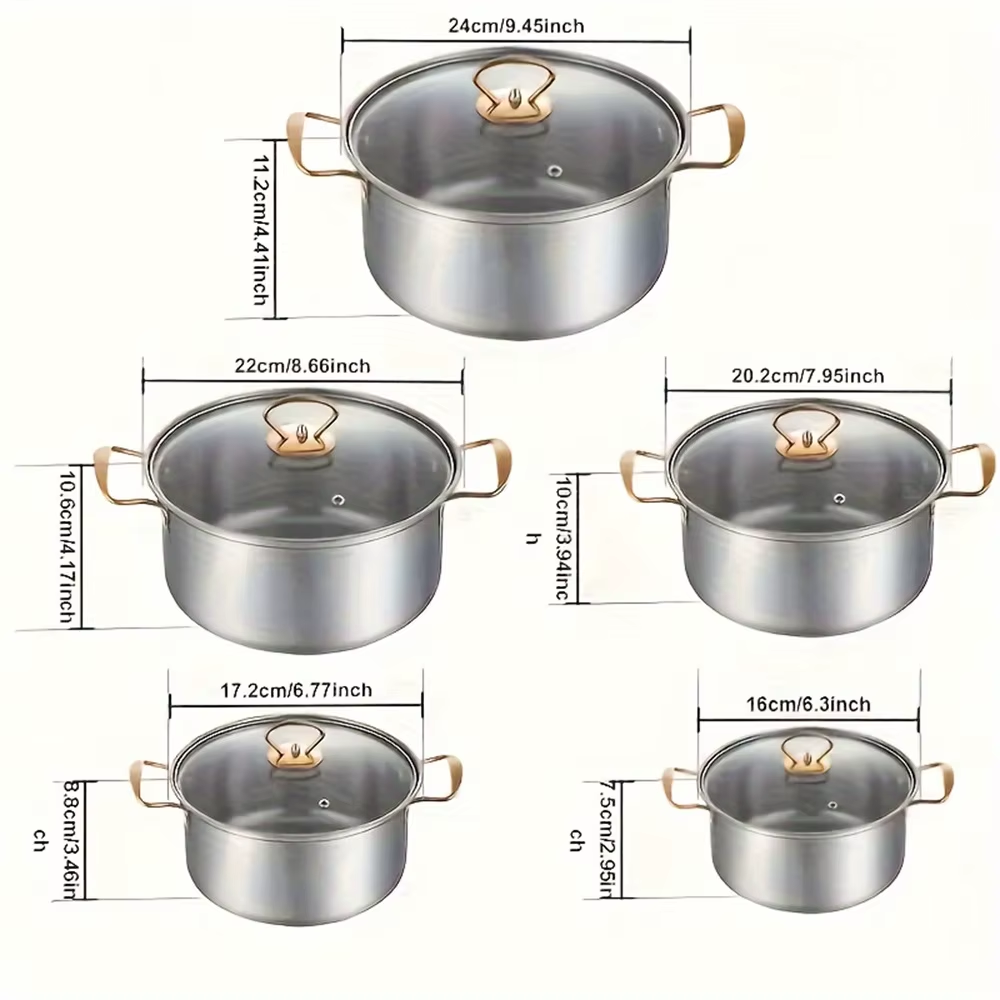 Seja você um chef de final de semana ou alguém que busca praticidade no dia a dia, o Conjunto de Panelas Inox Premium une o brilho do design moderno com a durabilidade que só o aço inoxidável de alta qualidade oferece. Disponível nas cores Prata Clássico e Dourado Luxo, este conjunto é o upgrade que sua cozinha merece.